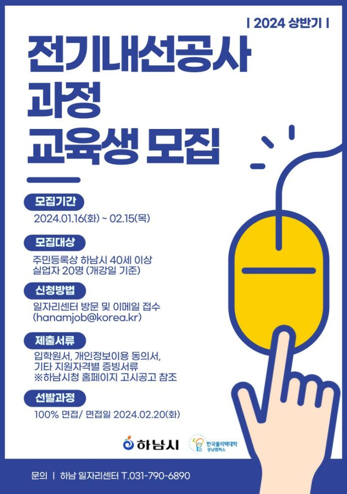 자세한 내용은 하남시청 홈페이지 고시공고란을 참고하거나 일자리경제과(031-790-6890)로 문의하면 된다.