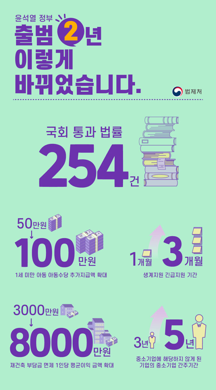 법제처는 13일 윤석열정부 출범 2주년을 맞아 주요 국정과제 입법 성과를 공개했다.
